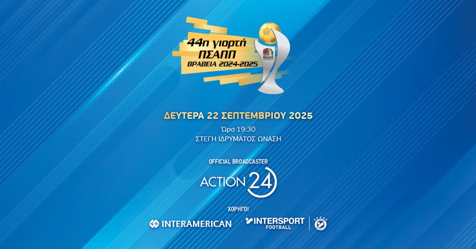 Τη Δευτέρα, 22 Σεπτεμβρίου 2025 στις 19:30 πραγματοποιηθεί, στη Στέγη Ιδρύματος Ωνάση, η «44η Γιορτή του ΠΣΑΠΠ», μία εκδήλωση θεσμός για το ελληνικό ποδόσφαιρο όπου θα βραβευτούν οι καλύτεροι και οι καλύτερες της σεζόν 2024/25, εντός και εκτός αγωνιστικών χώρων.