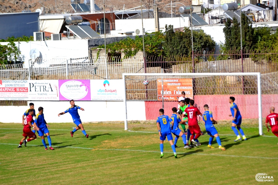 -Ο ΑΟ Πυλίου Κως με την ψυχολογία στα ύψη, είχε στα επόμενα λεπτά τον έλεγχο της κυκλοφορίας και στο 24’ το πλασέ του Λάλκοβιτς πέρασε λίγο άουτ. Ακολούθησε όμορφη ατομική προσπάθεια του Τσιτσεκίδη στο 27’.