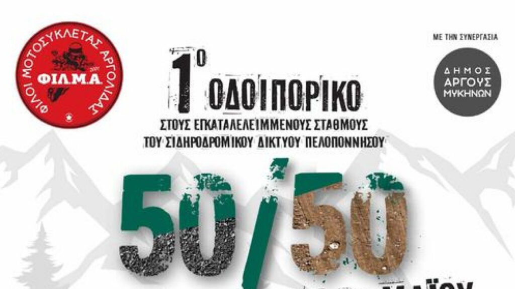 Με μεγάλη χαρά και ικανοποίηση ανακοινώνουμε την επιτυχή διεξαγωγή του 1ου Οδοιπορικού 50/50, που διοργανώθηκε από τη ΦΙΛΜΑ φιλοι μοτοσυκλετας Αργολιδας. Η εκδήλωση αυτή είχε ως στόχο την ομαδική οδήγηση με ασφάλεια, την ανάδειξη των ικανοτήτων πλοήγησης των συμμετεχόντων, και την εξερεύνηση των εγκαταλελειμμένων σιδηροδρομικών σταθμών του Δικτύου Σιδηροδρόμων Πελοποννήσου.